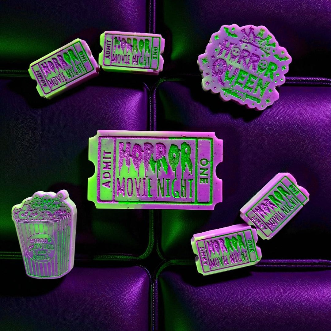 Approx weights: (Horror movie ticket 12g, Horror movies and chill 17g, Horror queen 21g, Large ticket 42g)